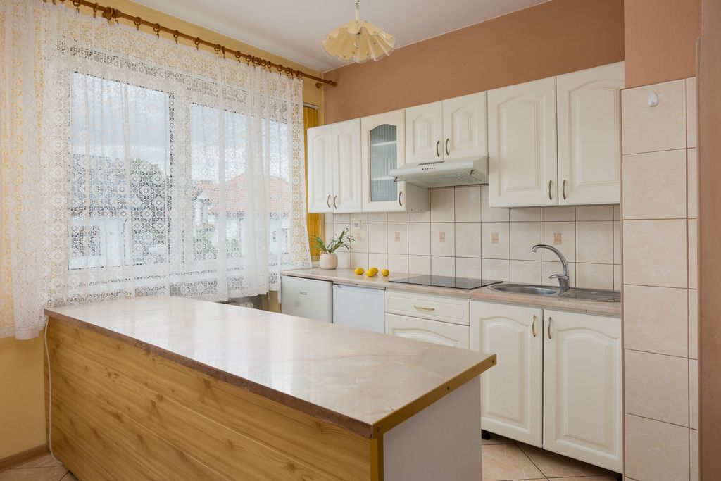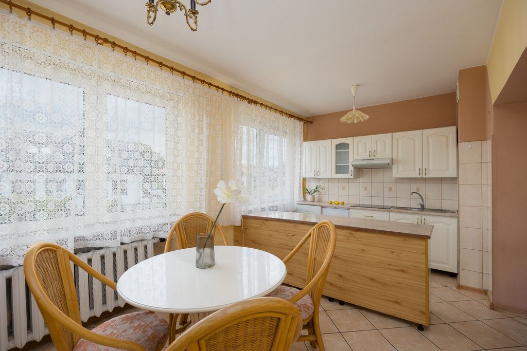 Wnętrza utrzymane są w dobrym stanie technicznym, z podłogami wyłożonymi parkietem i gresem, co zapewnia trwałość i elegancję. Kuchnia jest w pełni sprawna, umeblowana i wyposażona w sprzęt AGD, a łazienki wykończone glazurą i terakotą.