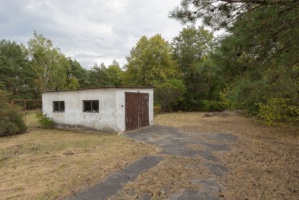 Działka o prostokątnym kształcie zapewnia wygodną aranżację ogrodu i przestrzeni rekreacyjnej. Na posesji znajdują się dwa garaże – pierwszy w bryle budynku, drugi wolnostojący.