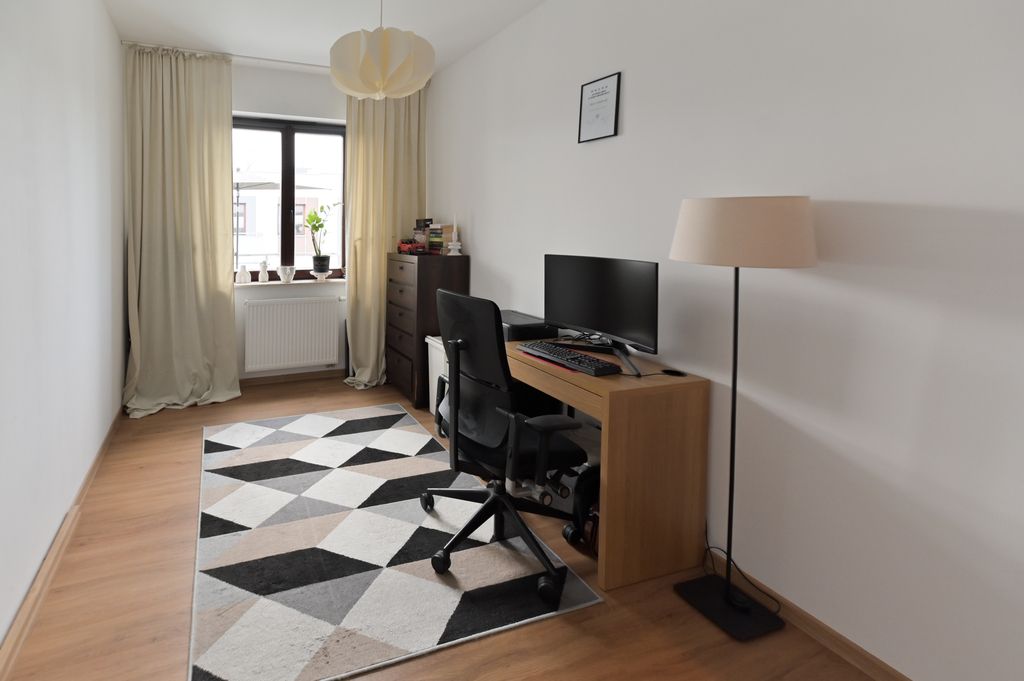 · Gabinet (11 m²): Jasny pokój do własnej aranżacji – idealny na biuro lub drugą sypialnię.