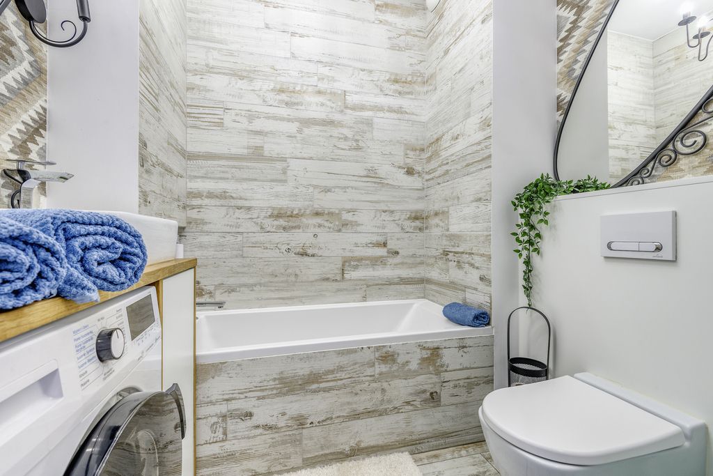 - łazienka z wanną połączona z toaletą