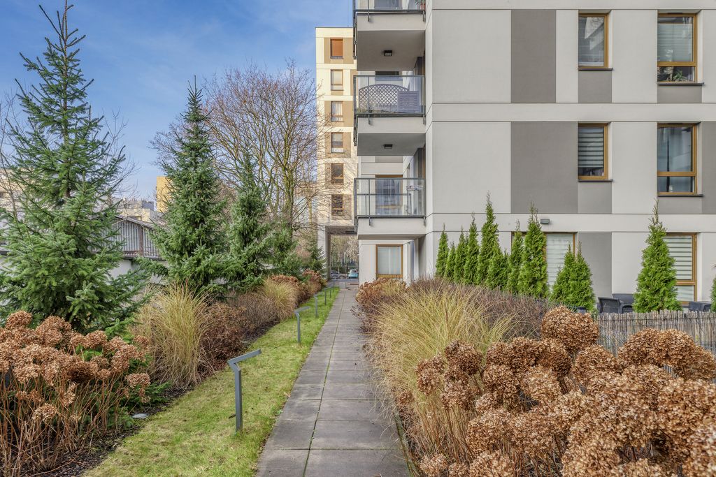 Mieszkanie mieszczące się na parterze na zamkniętym, monitorowanym z ochroną osiedlu .
