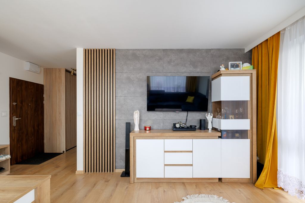 To przytulne mieszkanie na parterze w Ząbkach łączy nowoczesny design z funkcjonalnością i komfortem — idealne zarówno dla pary, rodziny, jak i jako inwestycja na wynajem.